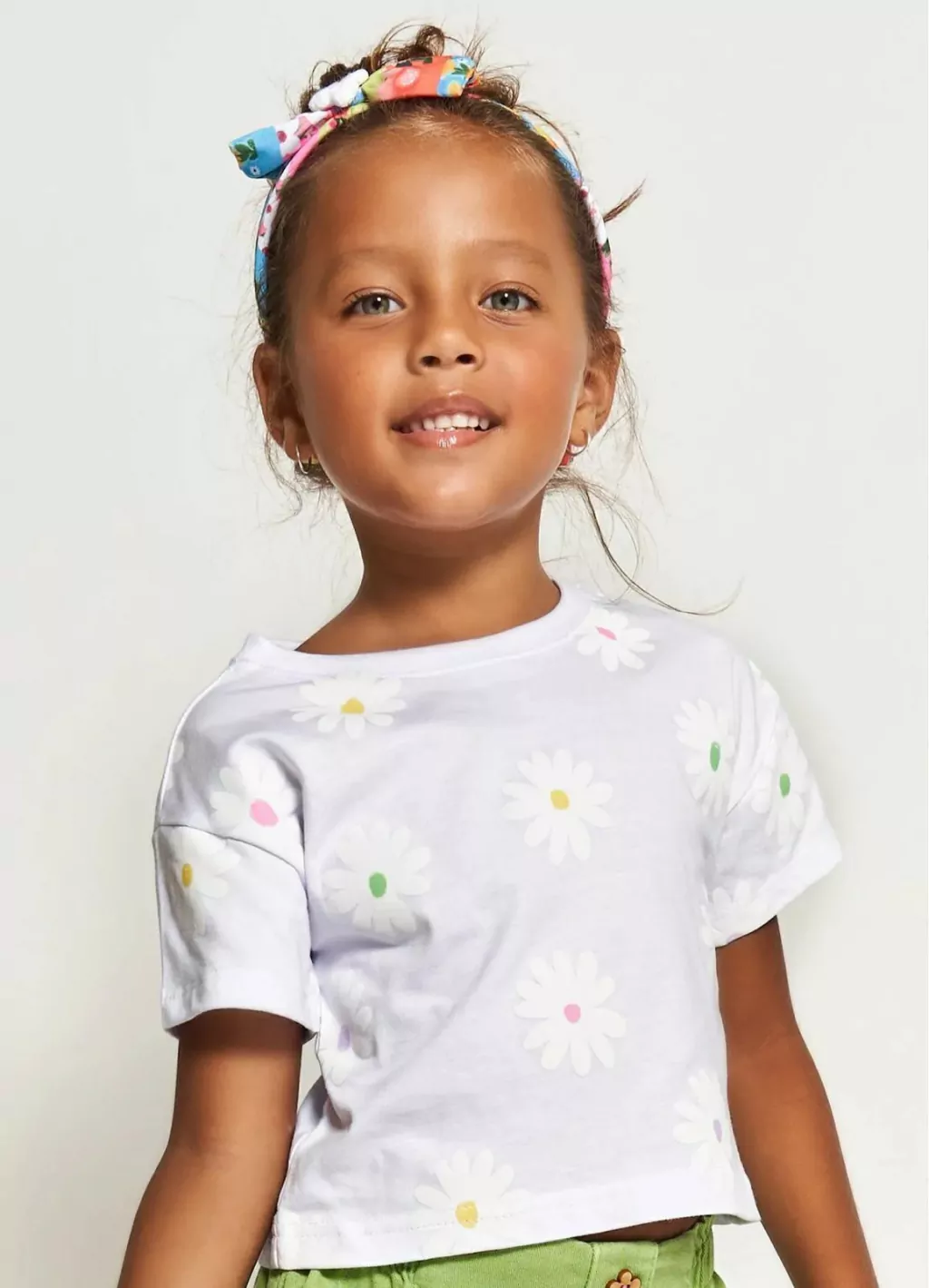 As flores caem na estampa da blusa infantil “Florzinha e Listra” para as meninas de 1 a 12 anos! Confeccionada em ½ malha 100% algodão, a peça conta com golinha redonda, manguinhas curtas e estampa frontal de várias margaridas com miolinhos coloridos. Uma gracinha! Uma ótima opção para o dia a dia delas!
